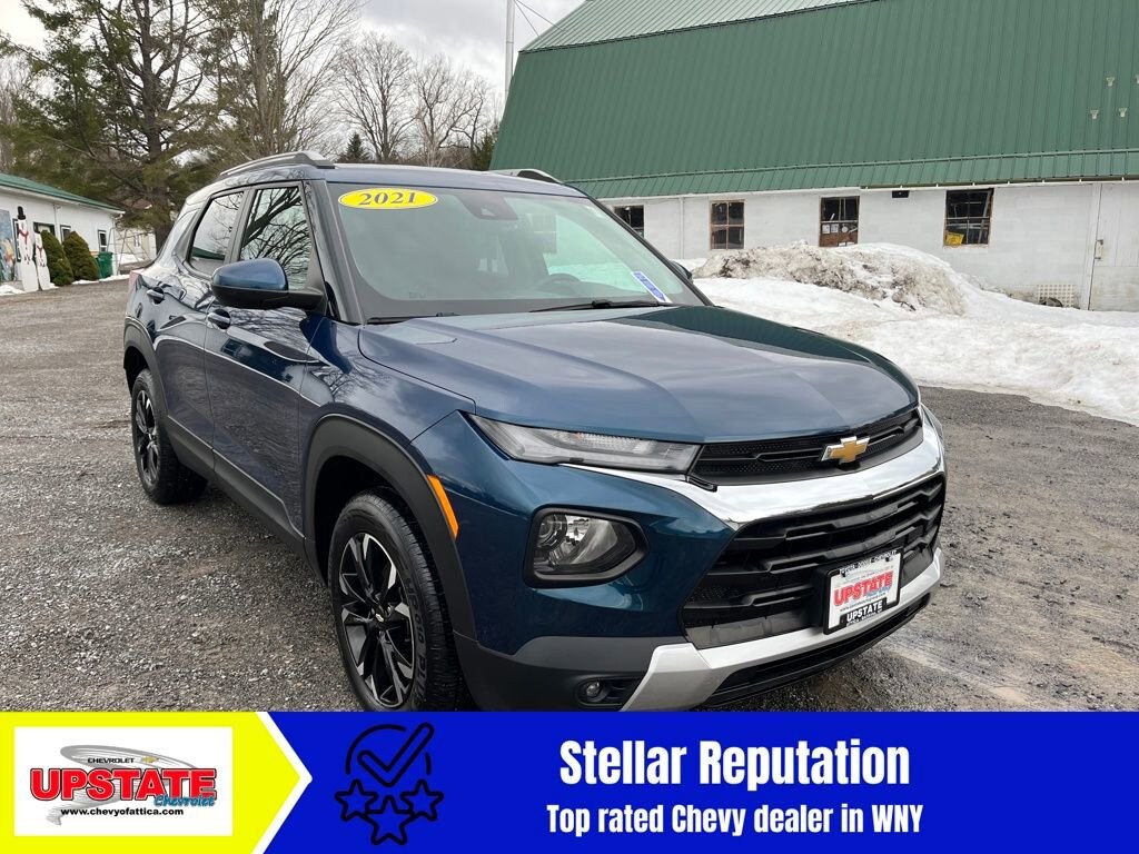 3 EASY WAYS TO BUY FROM UPSTATE CHEVROLET! **CALL US AT (585) 591-2300 **, **VISIT US ONLINE AT WWW.CHEVYOFATTICA.COM**, **TEXT US 24/7/365 @ (585) 765-4030** 2021 Chevrolet TrailBlazer LT 4D Sport Utility AWD 9-Speed Automatic 1.3L Ecotec Turbo DOHC SIDI w/VVT Pacific Blue Metallic26/30 City/Highway MPGAwards:* 2021 IIHS Top Safety Pick+ * Ward's 10 Best Engines and Propulsion Systems